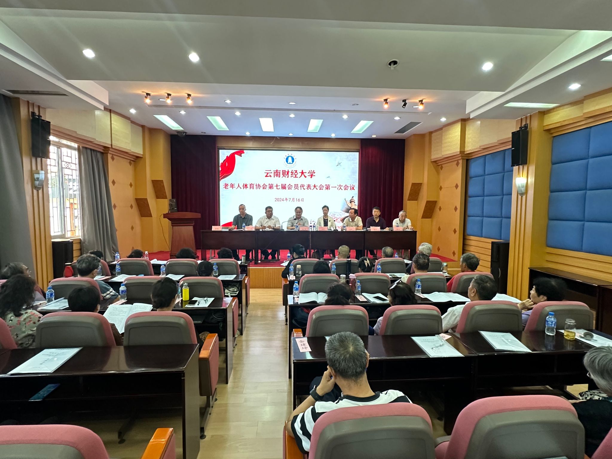 在第六届理事会任期届满之际,2024年7月16日上午,学校老年人体育协会在钟正山美术馆1楼报告厅隆重召开第七届会员代表大会第一次会议。学校党委委员、分管离退休工作的副校长颜明出席大会,换届工作领导小组副组长王晓萍、高天云、许坤泽等在主席台就座,47名会员代表参加大会,会议由离退休工作处处长高天云主持。