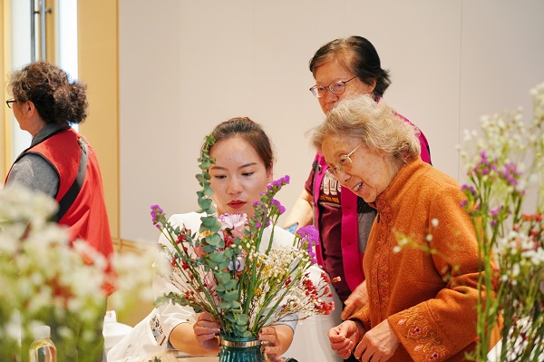 滇园的陈旷冰总经理为大家讲解了泰康之家的建设、发展情况,并带大家参观了园区,活动带给了大家全新的养老理念;大家还开心地参加了“喜迎三八.插花品香”活动,在花艺老师的指导下,大家纷纷亲自动手实践,浪漫多彩的康乃馨、勿忘我、零星点点的满天星……各色花卉放满了一桌,一瓶瓶溶合了丰富想象力的插花作品展现在了大家的面前,大家笑容洋溢、置身于鲜花丛中,开心地庆祝自己的节日。