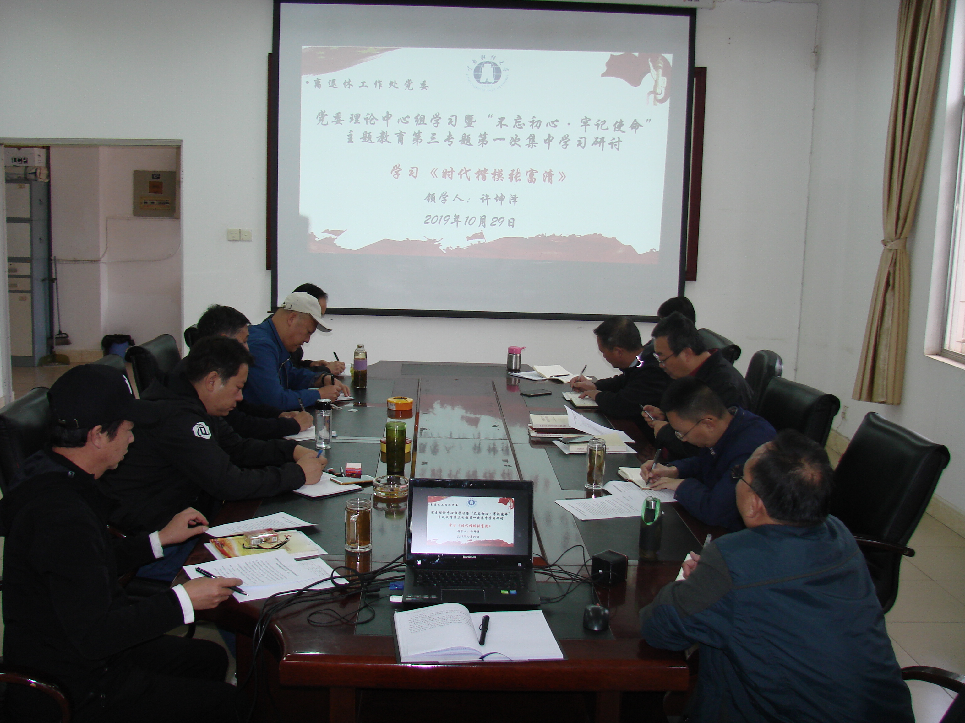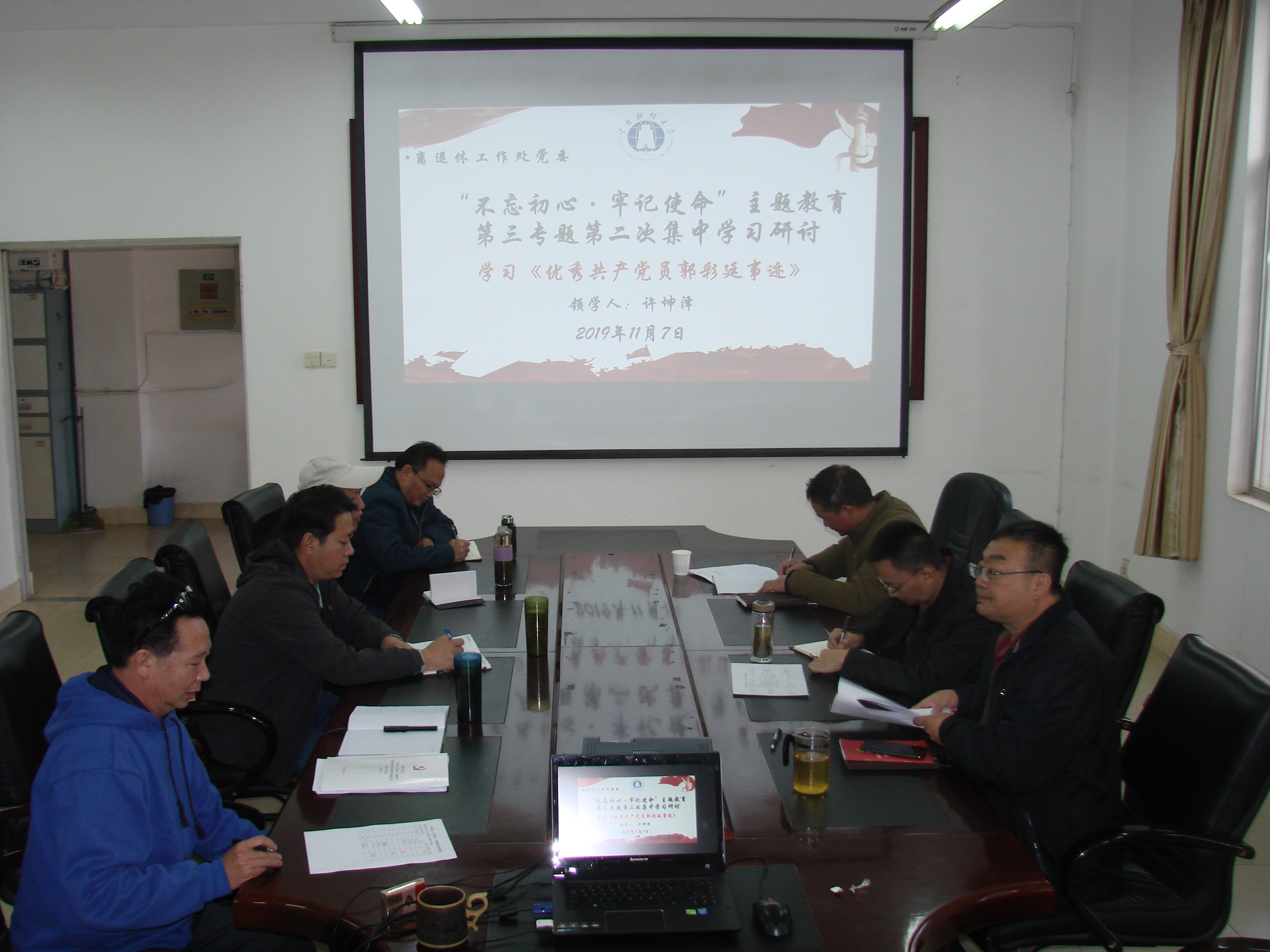 10月29日、11月7日离退休处党委分别组织开展“不忘初心、牢记使命”主题教育第三专题第一次、第二次集中学习,处党政班子、在职党员以及离退休党委第五、七支部书记参加学习,处党委书记唐永昆主持学习,处长许坤泽领学并做主题发言。