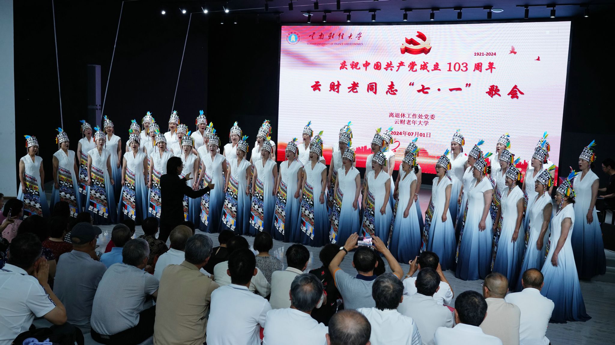 在中国共产党成立103周年之际,为进一步强化离退休党员政治引领,铸牢政治忠诚,坚定理想信念。 202471日,离退处党委与云财老年大学在北院路演大厅举办“庆祝党的生日”七一歌会。离退处党委所属10个党支部近80余名老党员、云财老年大学声乐班全体学员参加活动,西南大学昆明校友合唱团应邀参加活动。活动由云财老年大学校长许坤泽主持,云财老年大学声乐班指导老师陈重舫担任指挥。