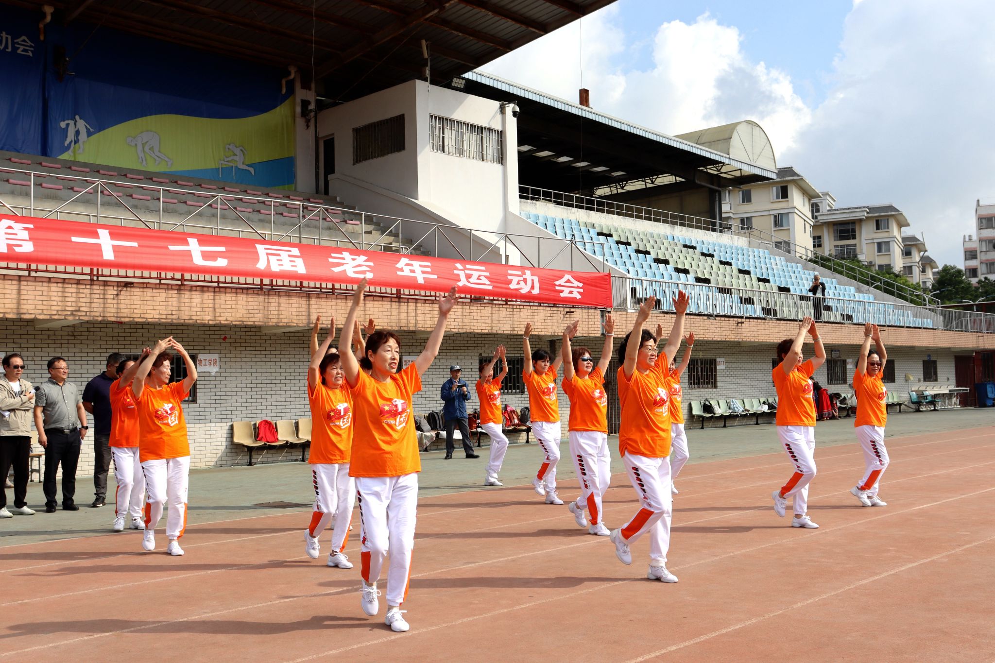 上午九时,开幕式正式开始。老同志们个个精神矍铄,脸上洋溢着灿烂的笑容,在主席台前整齐列队。老体协舞蹈队带来的健身操和舞蹈展演,赢得观众阵阵掌声。