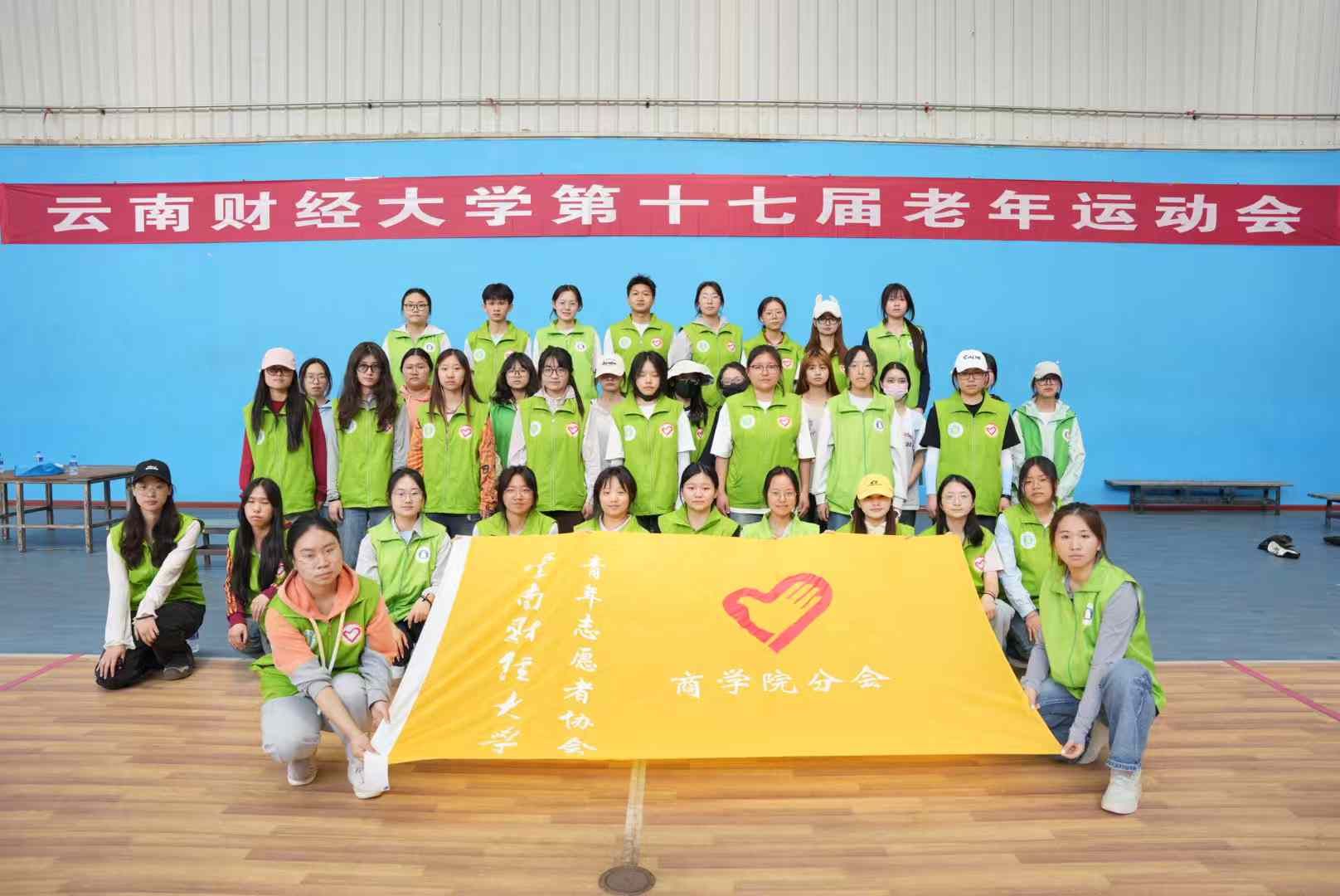 运动会现场,来自商学院40名大学生志愿者和27位银发志愿者活跃在各个角落,为参赛选手贴心服务,用热情和耐心传递着温暖。