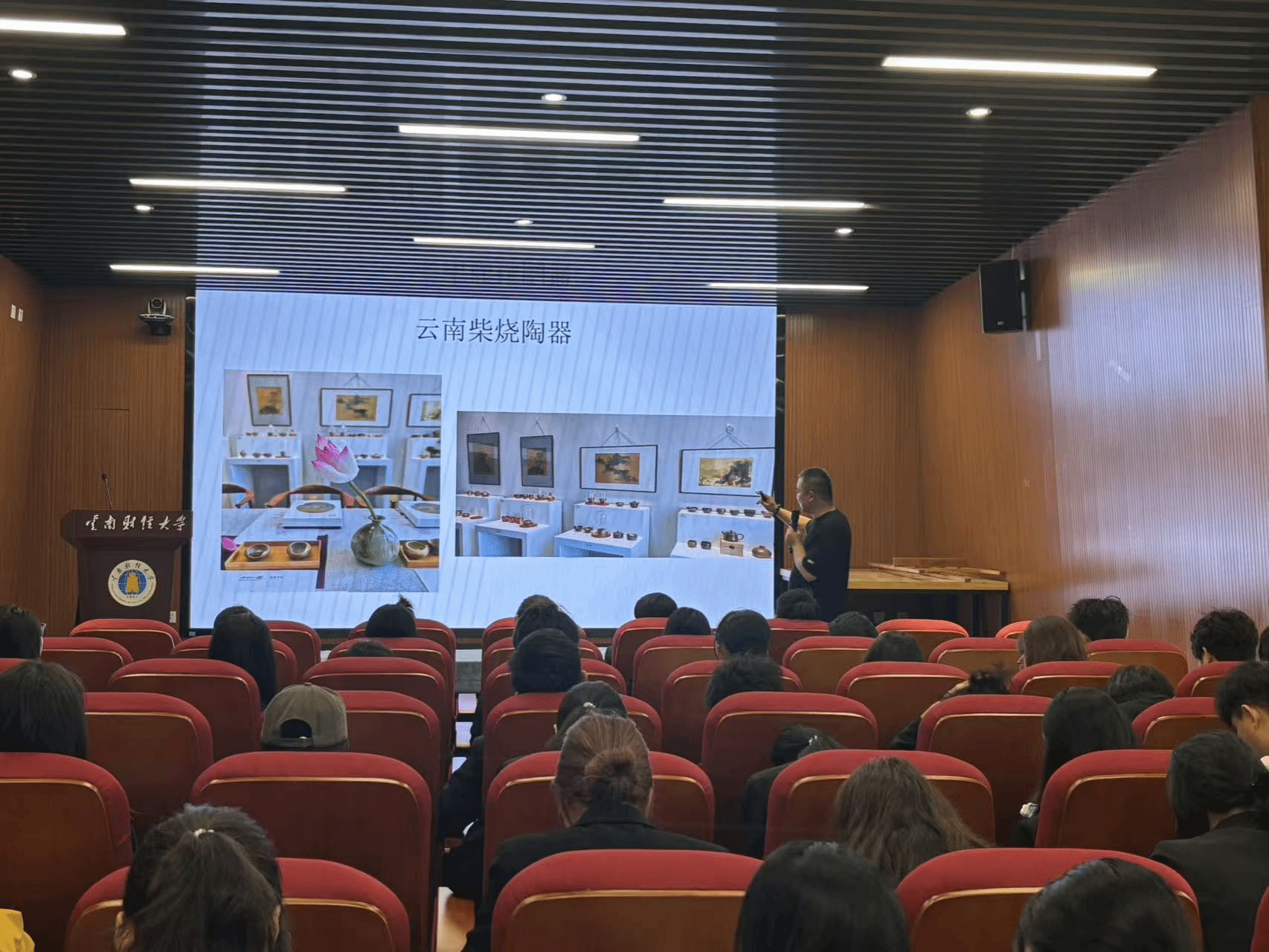 讲座中,唐跃军老师通过丰富的图片和实物案例,生动展示了云南各地的自然景观,以及云南当地非遗柴烧工艺的历史渊源与制作过程。柴烧作品不仅是一种陶艺技术,更是自然与人类协作的结晶,每一件作品都承载着泥土、火焰与匠人的情感与智慧。唐老师鼓励学生跳出课本与课堂,在实践与观察中提升审美素养,将美学思维融入未来职业发展与个人成长。本次活动不仅拓宽了学生的文化视野,也深化了他们对中华传统工艺与地域文化的认知。