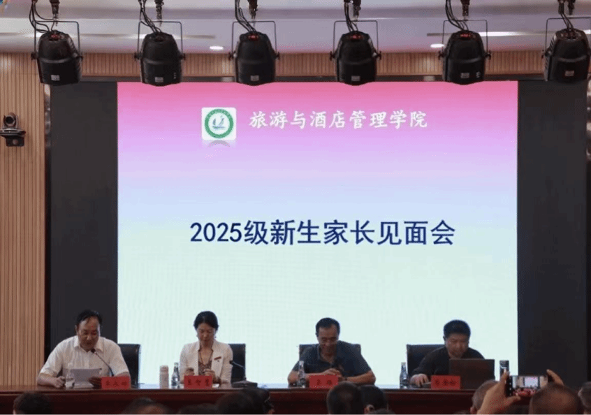 为增进新生家长对学院的了解,厚植家校共育理念,推动家校良性互动、凝聚教育合力,8月28日下午,旅游与酒店管理学院于齐远楼报告厅举行了2025级新生家长见面会。学院院长晏雄、党委副书记李永祥、副院长李雪松、王智慧、相关科室负责人以及60余位新生家长出席会议,会议由李永祥主持。