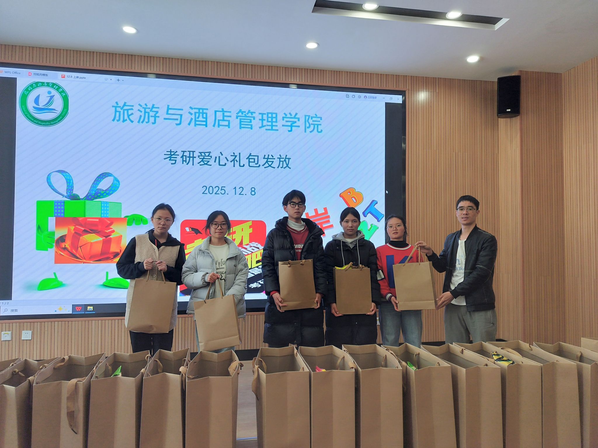 为鼓励学生积极备战考研,12月8日旅游与酒店管理学院在220报告厅开展考研暖心礼包发放活动,为学生送去一份别具一格的温暖与祝福。