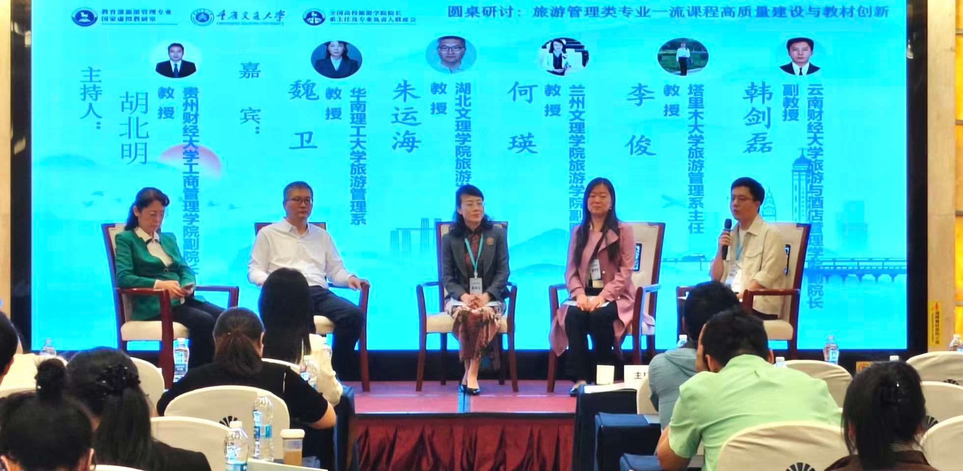 韩剑磊副院长参加“旅游管理类专业一流课程高质量建设与教材创新”圆桌研讨,围绕课程体系优化、教学资源建设及教材创新路径等内容,通过与会嘉宾进行深入交流,积极展示了学院在一流课程建设与教材改革方面取得的阶段性成果与实践经验。