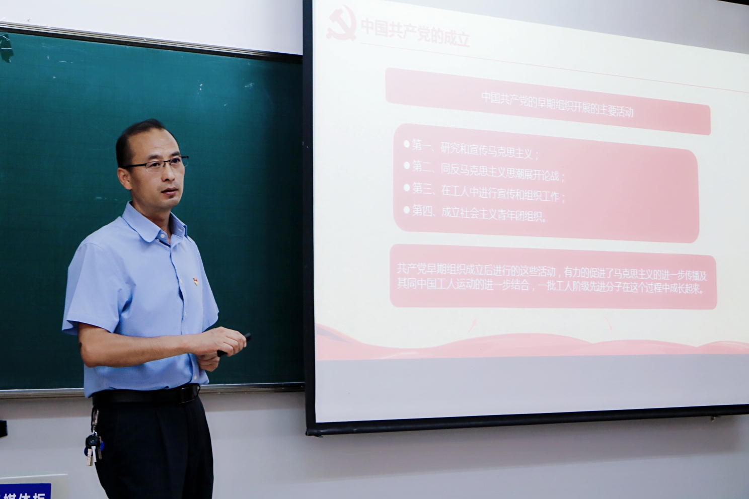 宣誓仪式后,学院党委书记张向英为大家带来了《光辉的历程 伟大的成就》的专题党课,他从近代中国的社会性质和革命任务、五四运动和马克思主义在中国的传播、中国共产党的成立三方面为大家进行讲述,并指出:作为一名党员,认真学习党的历史,对继承和发扬光大革命传统、党的优良作风,对提高自己的认识能力和处理实际问题的能力都是十分必要和有益的,我们党员可以在对历史的深入思考中做好现实工作,更好走向未来,不断交出坚持和发展中国特色社会主义的合格答卷。