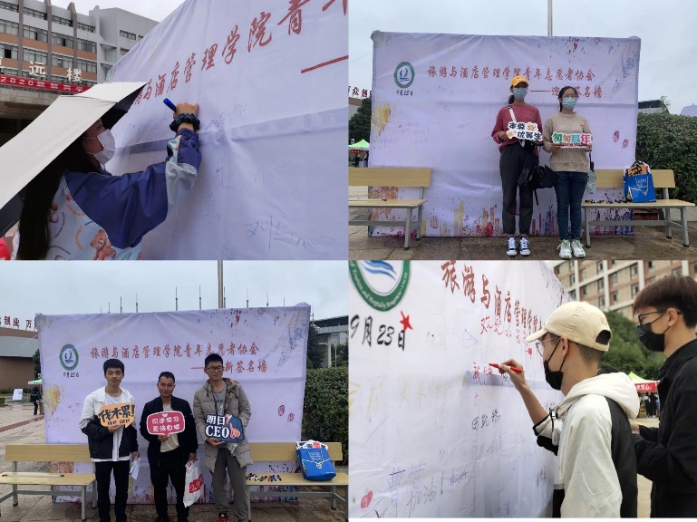 学院的此次迎新工作本着温暖新同学的宗旨,由青协志愿者协会在卓远楼前的博雅广场上设置了新生签名墙,同学们完成报到以后,前往签名墙签字、拍照和集体留影。我们用镜头记录下一张张稚嫩的脸盘,用最简单的方式为新同学留下他们踏入云财的第一张照片,也为他们留下了大学最为珍贵的记忆。