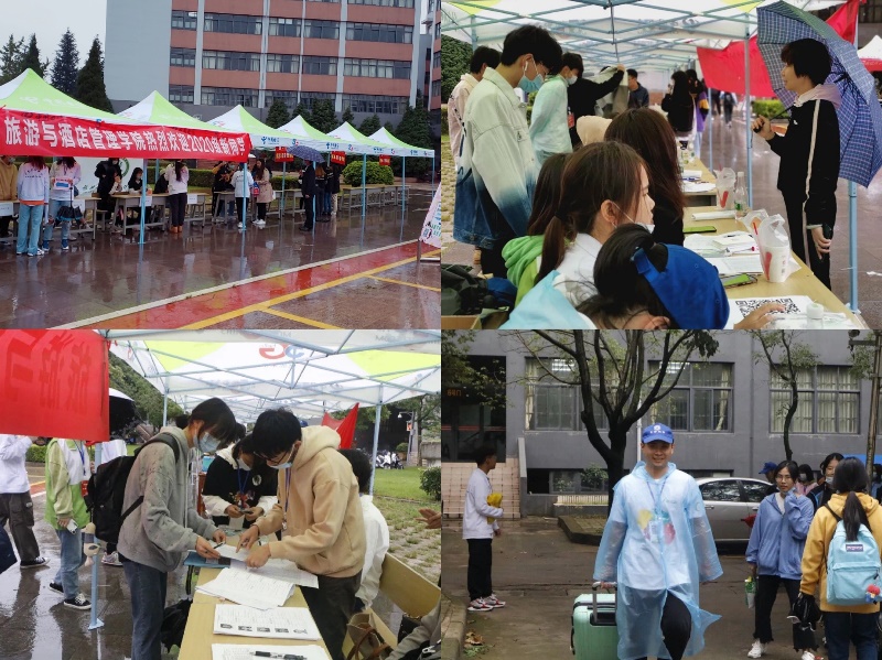 秋雨拂过的金秋九月,WilliamHill官方网站开学季如期而至。9月23日清晨,旅游与酒店管理学院迎新工作拉开序幕,淅沥沥的雨中,学院最可爱的老师和志愿者们坚守在各个岗位,为新到来的同学们依次完成行李搬运、住宿办理、身份核验、学籍信息录入和水卡饭卡发放等一系列接待工作。迎新当天,旅酒学院共315名新生顺利入校报到,学院团委学生会、学生自律委员会学生志愿者60余人全天参与到工作中。