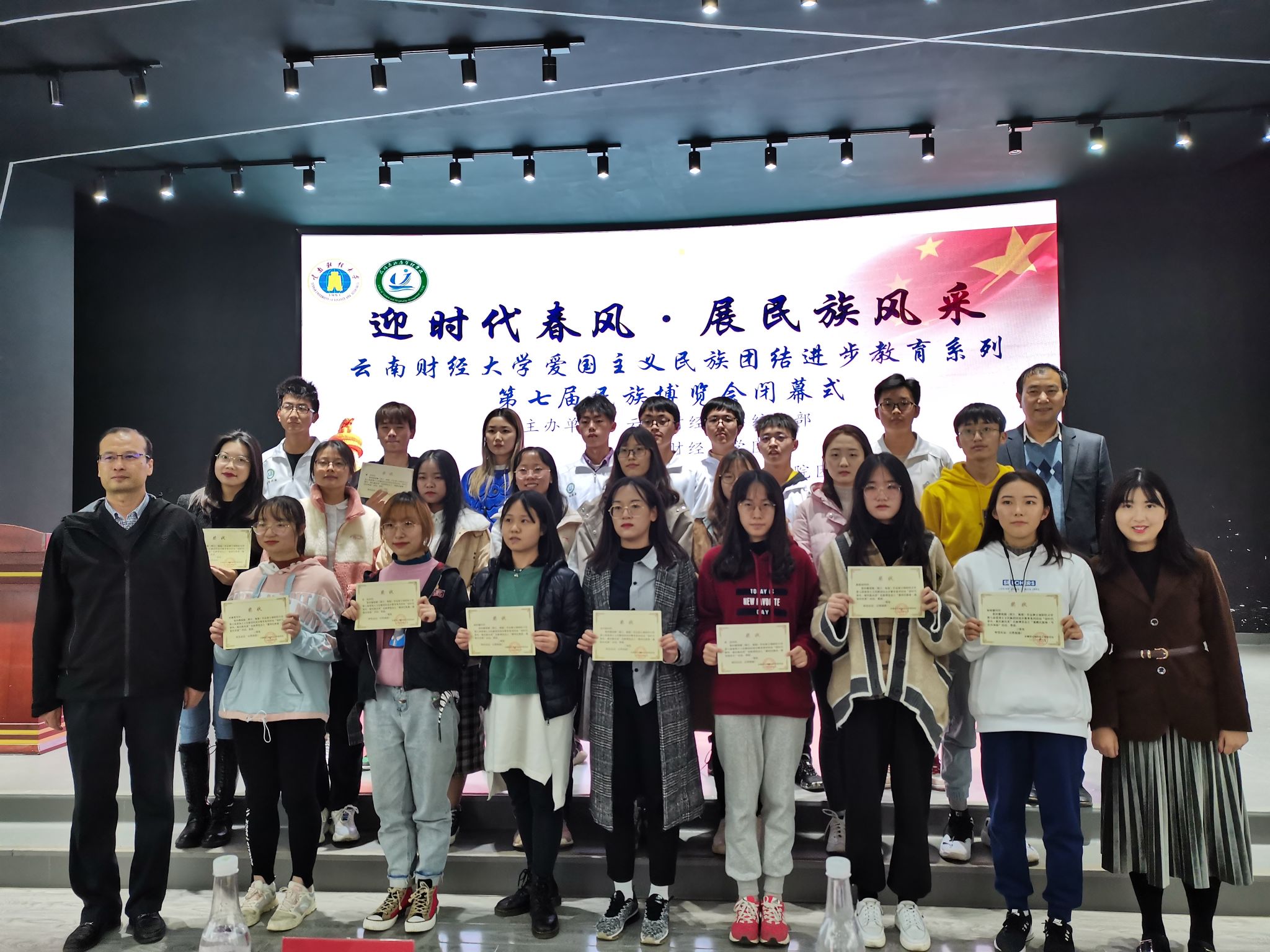 12月10日晚,游与酒店管理学院在北院路演大厅举行“迎时代春风,展民族风采”WilliamHill官方网站爱国主义民族团结进步教育系列第七届民族博览会闭幕式。学院党委书记张向英、学生科科长李永祥、团委负责人代丽虹以及各学院获奖同学参加活动。