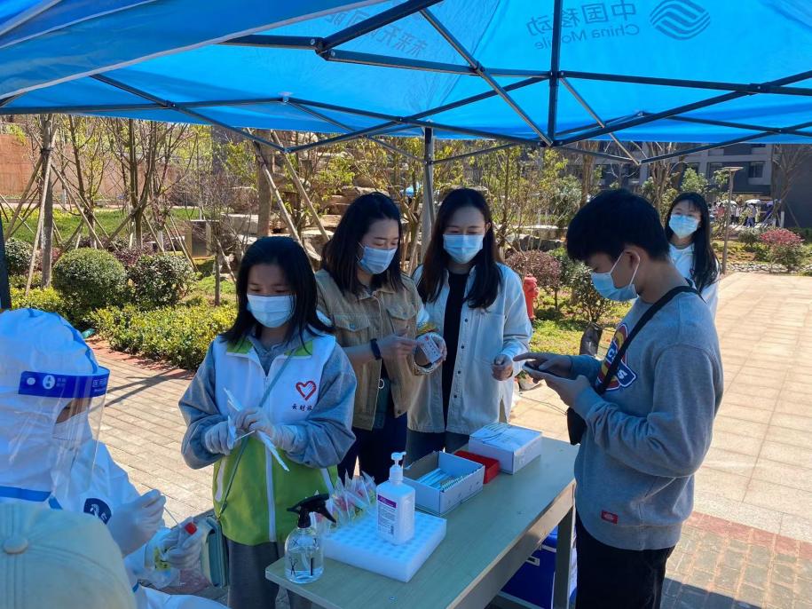 2022年3月7日,昆明市呈贡区在新冠肺炎核酸检测初筛中发现2例阳性病例,为保护全校师生健康安全,学校于3月8日组织全体在校学生参加核酸检测。为全方面落实学校疫情防控措施,切实保障学生的健康安全,旅游与酒店管理学院分工会女职工纷纷深入一线参加志愿工作,与医护人员一起努力打好这次“防疫战”。