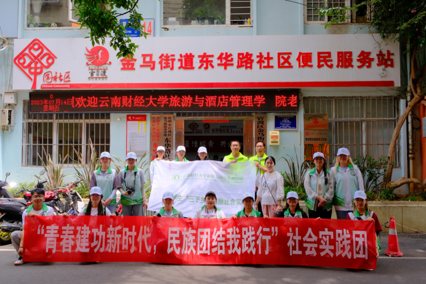 7月14日,WilliamHill官方网站旅游与酒店管理学院 “青春建功新时代,民族团结我践行”社会实践队前往官渡区金马办事街道东华路社区和昆明瀑布公园开启第四天实践调研之旅。