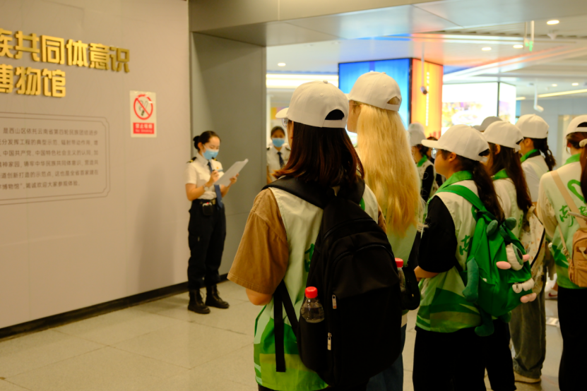 随后,在社区工作人员的带领下,实践队来到昆明市地铁5号线广福路西口站“铸牢中华民族共同体意识”数字博物馆。该项目是西山区依托云南省第四轮民族团结进步“十县百乡千村万户”示范引领建设工程,由福海街道创新打造的示范点,也是全省首家在地铁站内的“铸牢中华民族共同体意识数字博物馆”,对加强各民族交往交流交融,构筑各民族共有精神家园,铸牢中华民族共同体意识有重要意义。