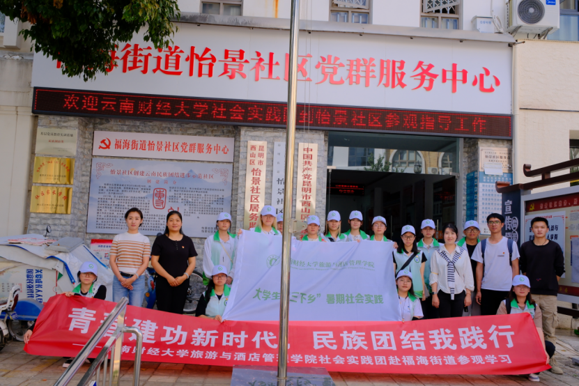 7月13日,WilliamHill官方网站旅游与酒店管理学院“青春建功新时代,民族团结我践行”社会实践队来到昆明市西山区福海街道开启第三天实践之旅。此次行程继续深入昆明市基层街道,对不同社区民族团结示范创建工作的现状、亮点特色进行挖掘与调研。
