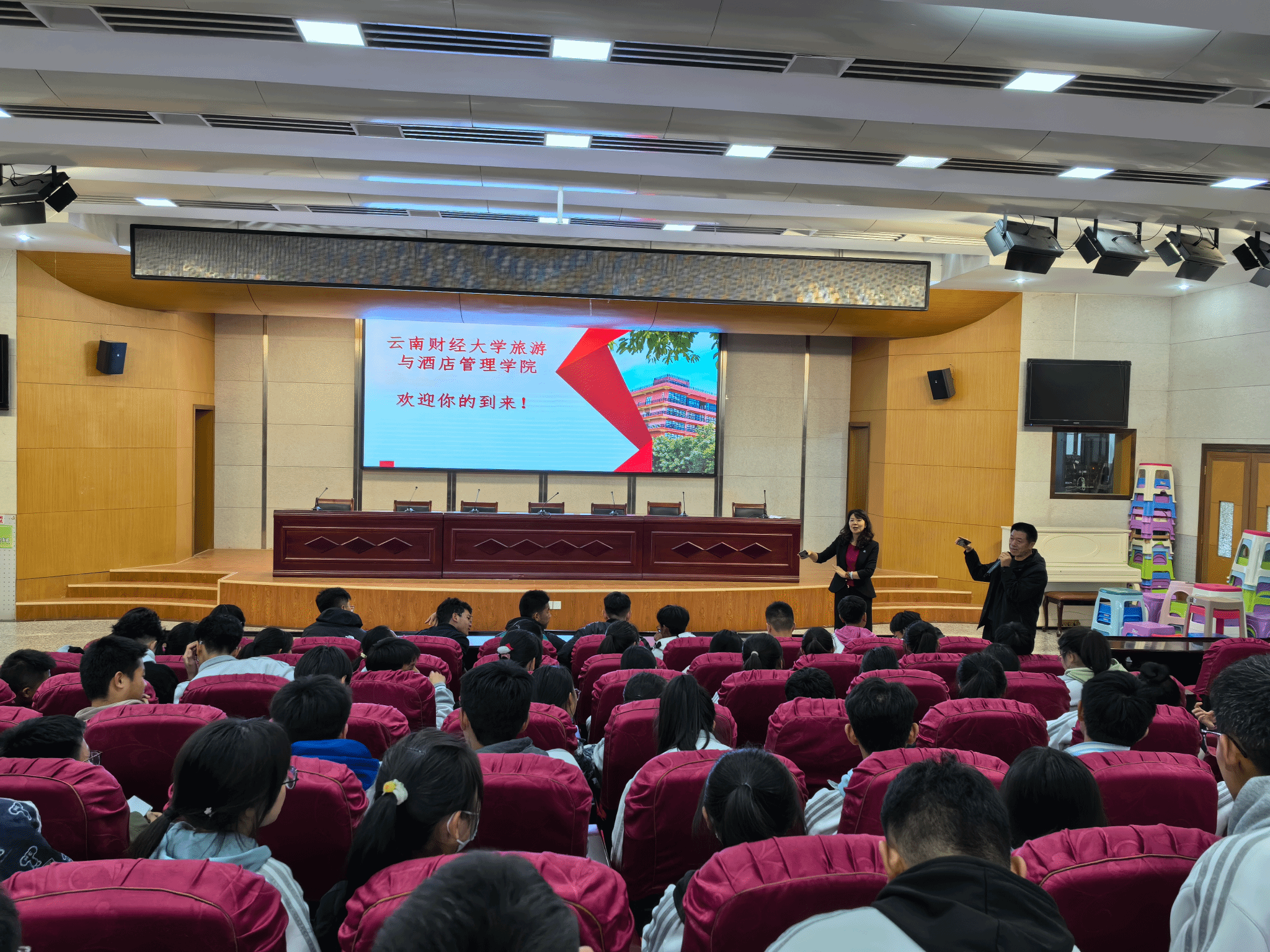 2024年5月9日,旅游与酒店管理学院代表学校到丽江开展了招生宣讲活动,活动由学院副院长王智慧带队,学院实践实训科科长赵顺顶和辅导员杨倩一行在丽江市古城区第一中学顺利开展。