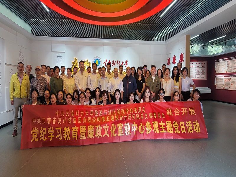 为了深入开展党纪学习教育,加强党风廉政建设,增强党员干部的法治意识和廉洁自律意识,5月24日下午,旅游与酒店管理学院党委与云南省设计院集团有限公司第五建筑设计研究院党总支联开展“党纪学习教育”暨党风廉政建设参观活动。