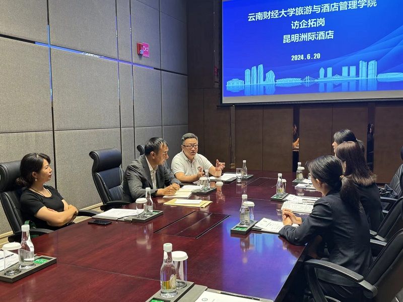 为深化校企合作,优化人才培养,为学院学生实习和就业建立更加有效的机制,拓展更为充分的渠道。6月20日,旅游与酒店管理学院副院长王智慧、党委副书记李永祥、酒店系系主任胡晓及毕业班班主任解长雯一行,充分利用毕业季关键期深入企业开展调研,与校企合作单位负责人进行了深入交流并走访看望毕业生。当天分别走访了云南枫叶王府企业集团、昆明洲际酒店、昆明华邑酒店、昆明香格里拉酒店4家企业。