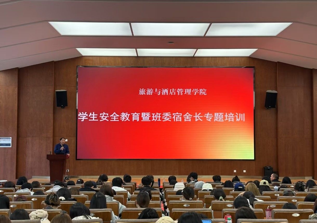 为发挥学生宿舍这一基本组成单元在安全管理、学风建设中的重要作用,旅游与酒店管理学院于3月14日下午在鹏云一附101报告厅举行了班委、宿舍长专题培训。学生科科长孙晓琼、辅导员以及学院300余名班干部和宿舍长共同参与了此次培训。培训活动由学院党委副书记李永祥主讲。