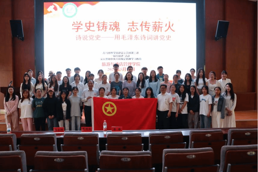 张国政以诗说党史——用毛泽东诗词讲党史为题,将诗与党史结合,系统梳理毛泽东诗词,热情高昂地为现场师生阐述了党的光辉历史。从少年时期《五言·井赞》的胸怀抱负、到大革命时期《沁园春·长沙》的远大理想,再到井冈山斗争时期《西江月·秋收起义》的壮志豪情,生动展现了毛泽东作为卓越的政治家和伟大的诗人,在缔造和建设新中国的历史进程中,不仅创作了气吞山河的不朽诗篇,也成就了举世公认的千秋伟业,形象地反映了中国共产党人救国救民的艰辛历程和波澜壮阔的中国革命史。现场师生在激昂慷慨的讲座中备受振奋,深入领悟了中国共产党为什么“能”。
