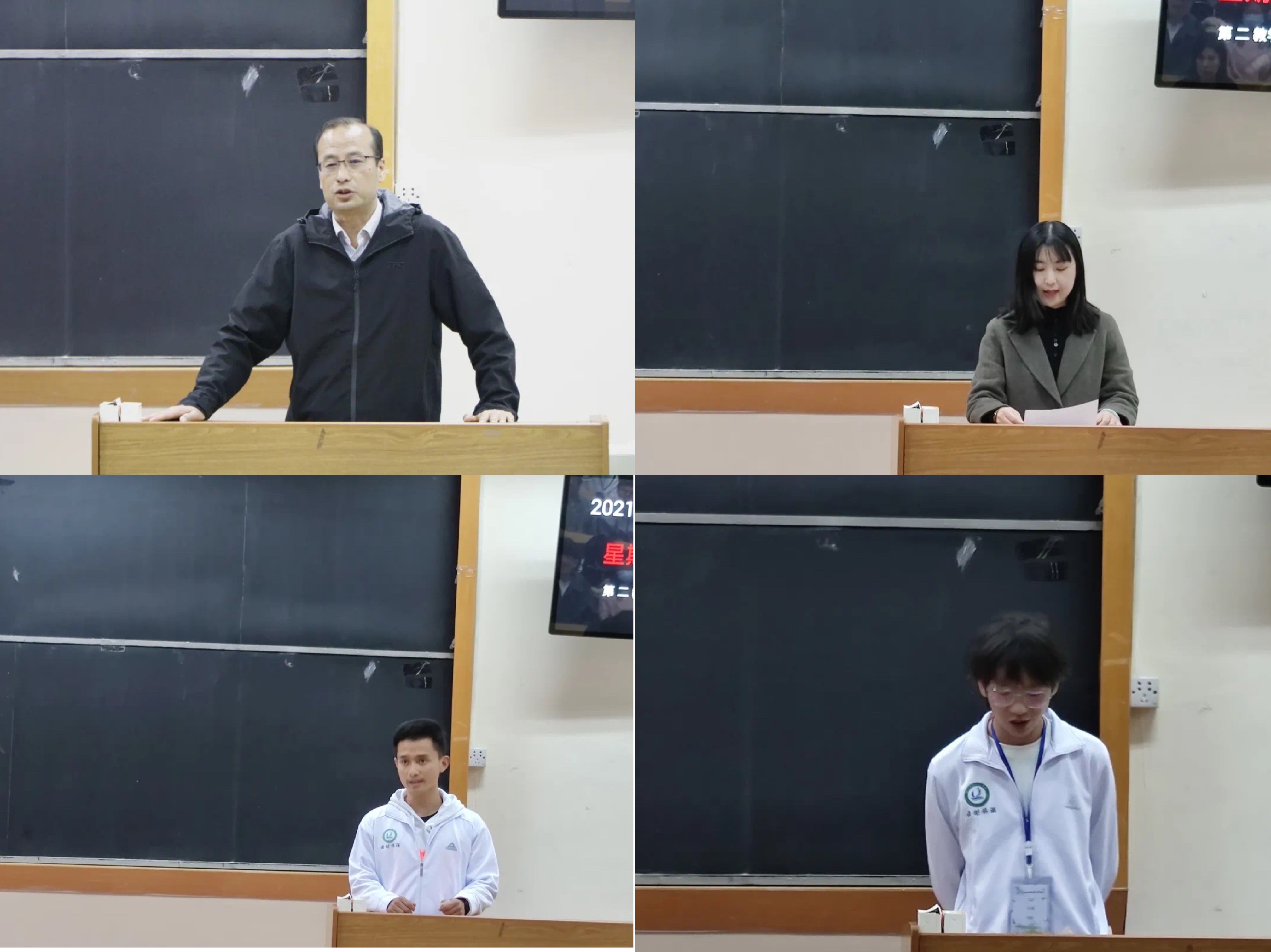 大会开始,李永祥老师就学生组织在学院工作中的重要意义、学生骨干在学生群体中发挥的重要作用以及团学骨干如何提升自我几个方面给同学们上了生动一课,指出团学工作不仅能使大学生加强人际交往能力,还能从中学到各项技能从而提升自己。随后,代丽虹老师以“感谢”、“坚守”、“初心”三个部分向大会做了上一学期的工作总结,感谢每个坚守在自己岗位上的学生骨干,同时勉励同学们戒骄戒躁,带着服务师生的初心继续做好新一年的工作。接下来学生会优秀骨干代表和青年志愿者协会优秀志愿者代表分享感言,分享自己自加入团学大家庭以来所得到的的收获及体会到的感受,引得现场同学们的共鸣。