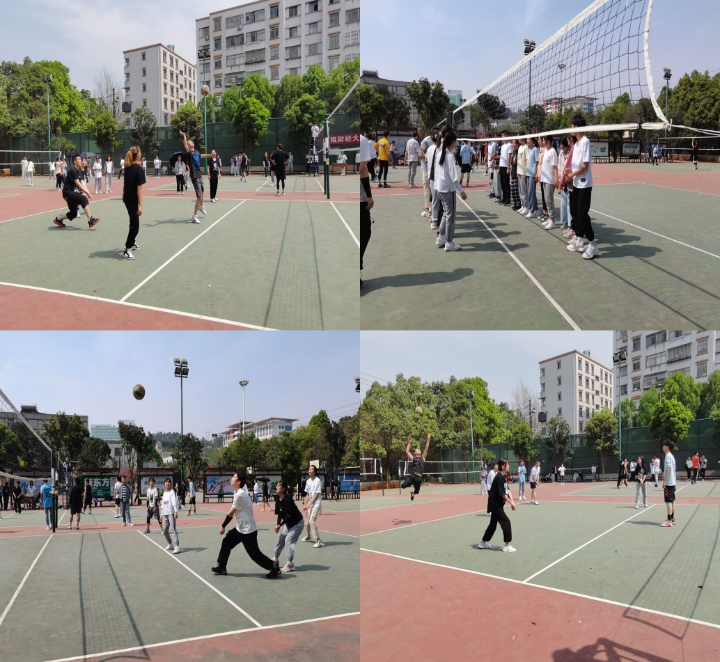 旅游20-1班和酒店20-1班的比赛随即也开始了。旅游一班通过队员之间默契的配合,赢下上半场的比赛,但酒店一班的球员们不甘落后,以不逊的实力在第二场发挥出了超高水平,双方在焦灼中以旅游一班的胜利结束了比赛。最后一场旅游20-2班和旅酒排球联队的比赛中,场外呼声高涨,两队球员凭借自己的球技,为观众们带来了一场精彩绝伦的角逐,最终旅游20-2班赢下了比赛。