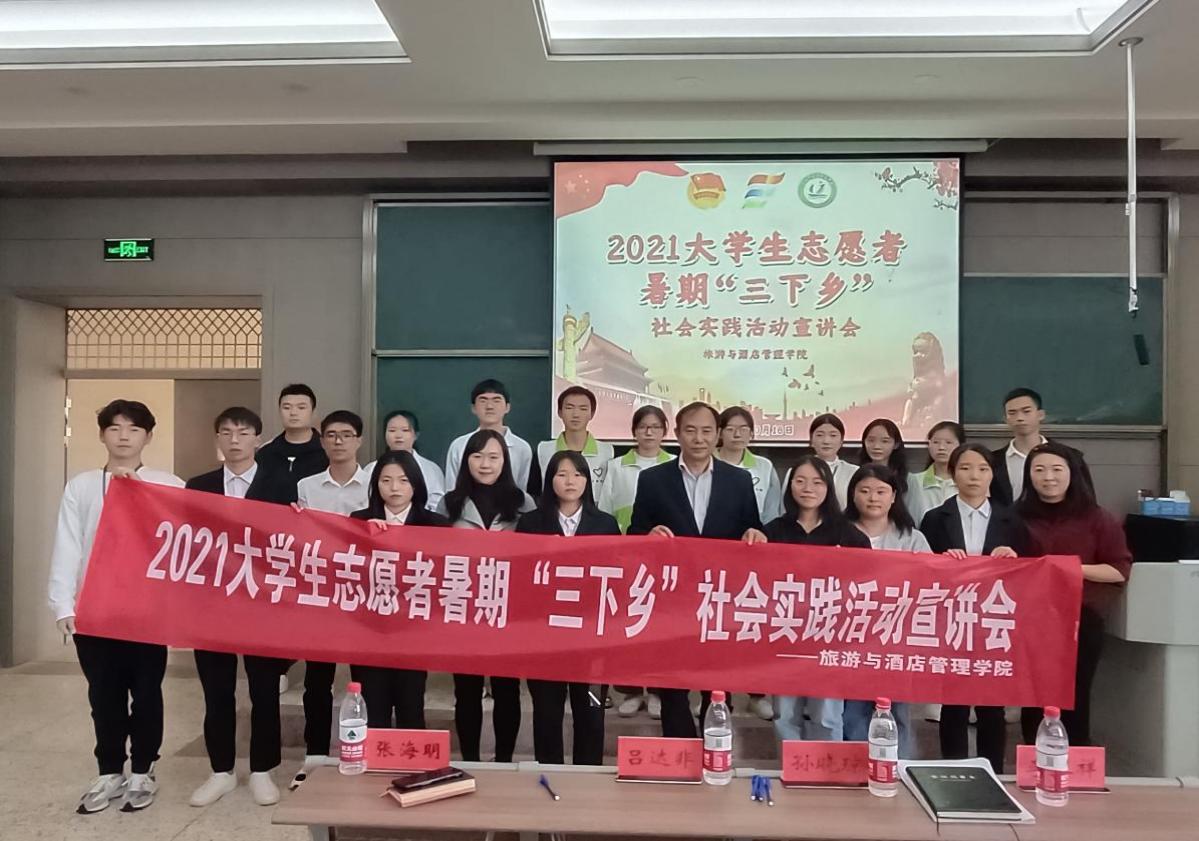为总结大学生志愿者暑假“三下乡”社会实践活动经验,展示“三下乡”成果,扩大宣传影响力。2021年10月18日,旅游与酒店管理学院在鹏云楼二209教室开展“三下乡”宣讲会。学院党委副书记李永祥、团委负责人张海明、学生科负责人孙晓琼、辅导员谷彦霆和吕达菲老师以及学生代表50余人参加分享会。