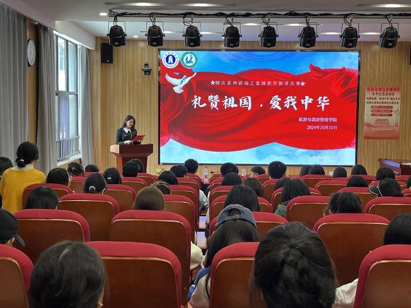为庆祝中华人民共和国成立75周年,弘扬爱国主义精神,增强学生的民族自豪感和集体荣誉感,2024 年 10 月 1日-10月11日,旅游与酒店管理学院青年志愿者协会采用线上与线下相结合的方式,圆满举办了 “礼赞祖国,爱我中华” 国庆系列活动之爱国主题演讲比赛。