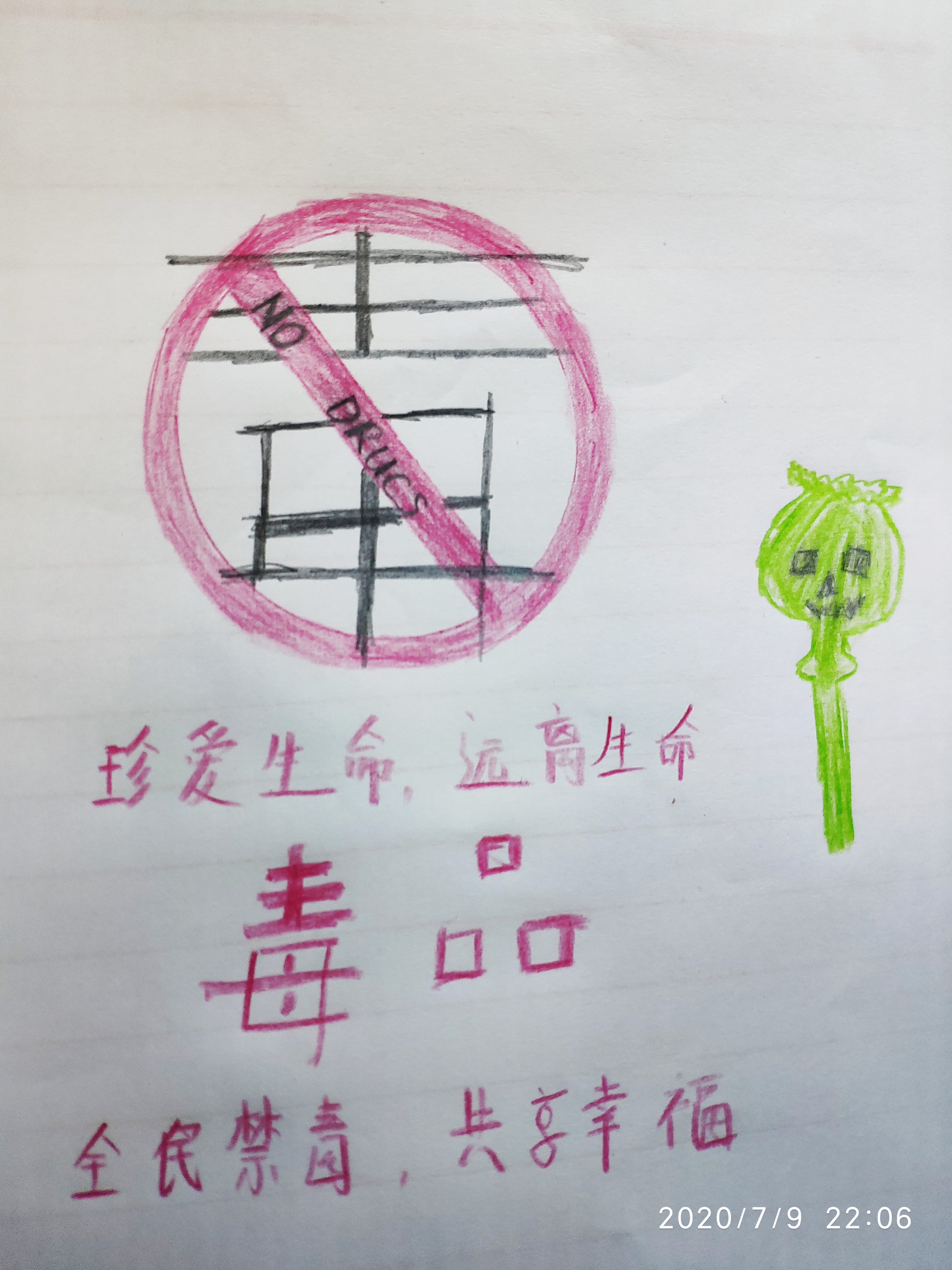 禁毒事大,人人有责。通过此次活动,让同学们仔细认真的思考毒品对于人们的危害,提高了广大青少年的禁毒意识和防毒拒毒能力,活动效果良好,意义深远。