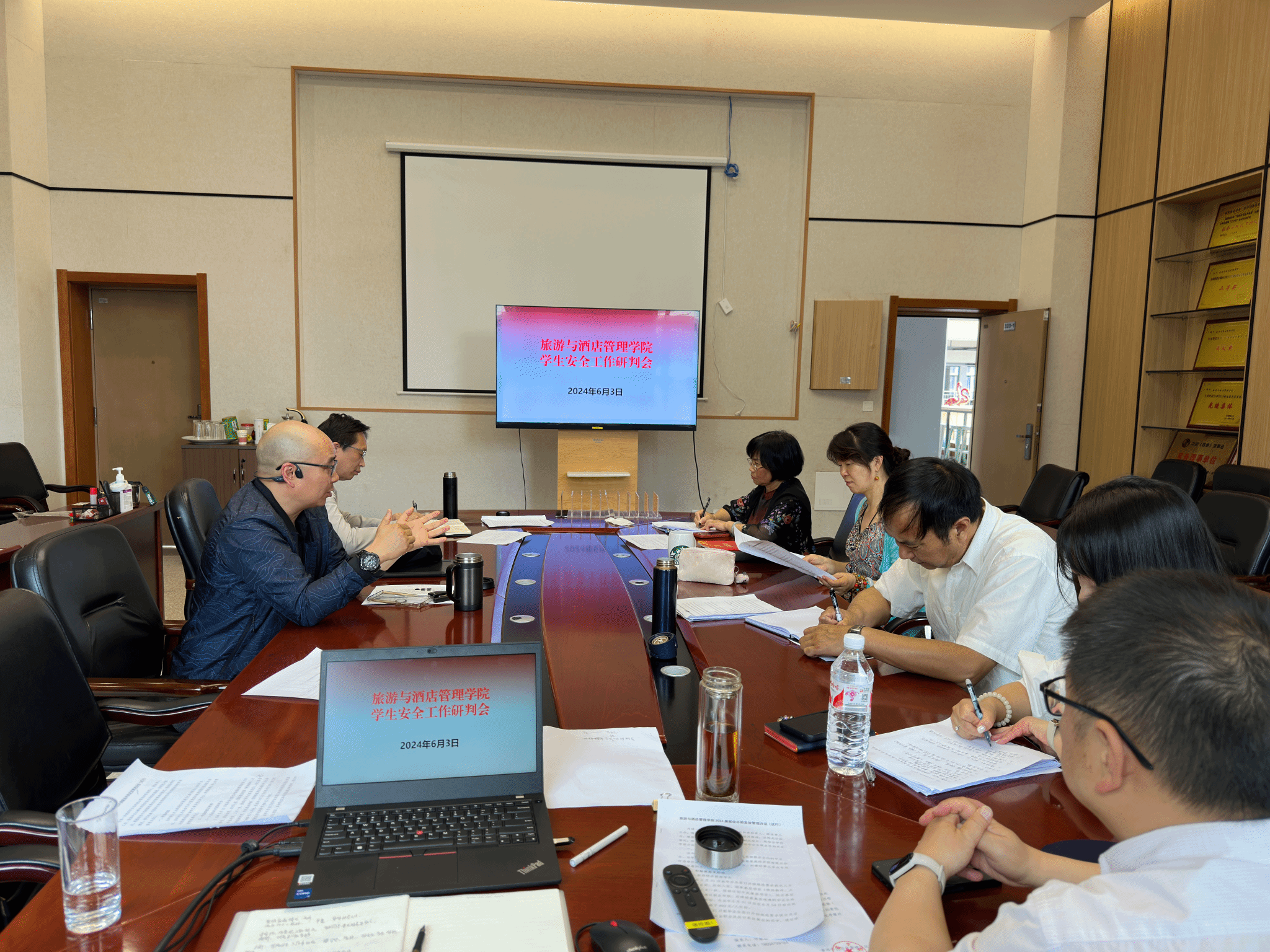 为加强学生安全管理,防范化解风险隐患,6月4日上午,旅游与酒店管理学院在齐远楼333会议室召开学生安全工作研判会。学院党委领导班子、辅导员、班主任代表参加会议。