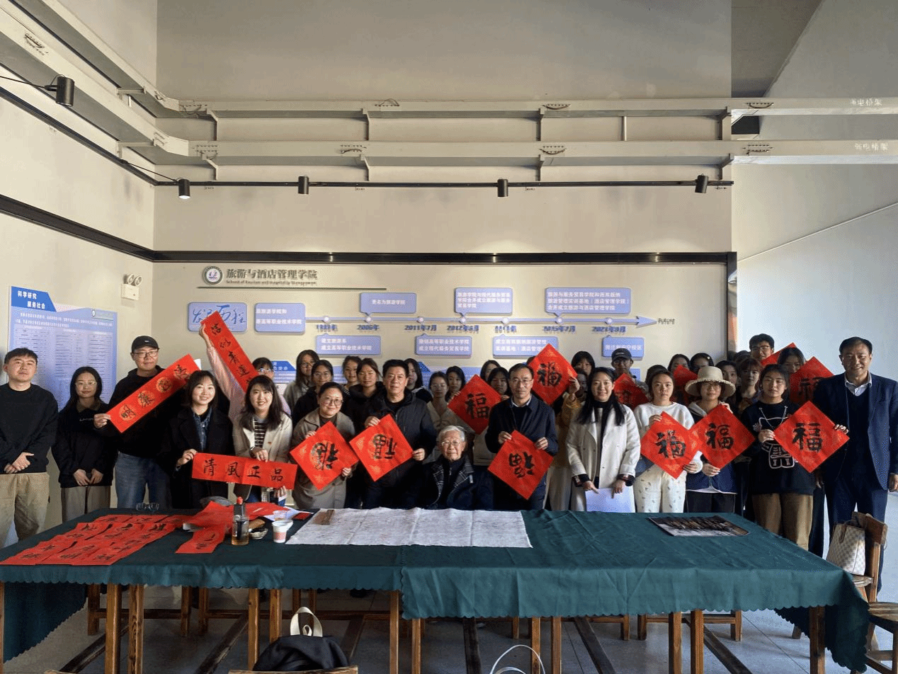 为推进“清廉学院”建设和学风建设,大力传承培树中华美德和优良家风,旅游与酒店管理学院于12月12日下午在齐远楼3楼平台举行“弘扬好家风·送福迎新春”写春联活动。学院班子成员、师生党员共计60余人参加,活动吸引了众多过往学生驻足观赏。