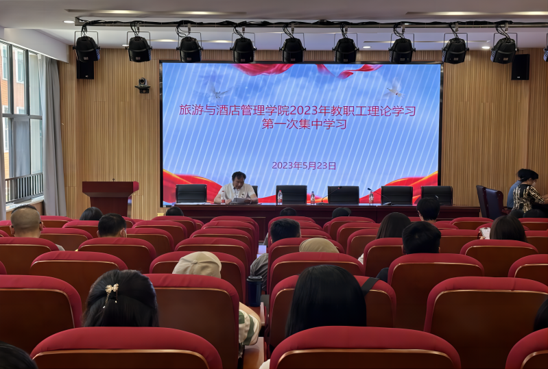 5月23日下午,旅游与酒店管理学院召开2023年教职工第一次集中理论学习,由学院党委副书记李永祥领学,学院全体教职工和学生党员代表参加大会。