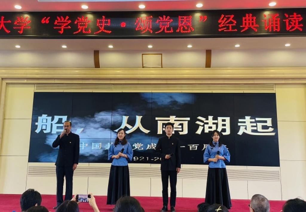 2021年6月18日下午,学校在北附201学术报告厅举办“学党史、颂党恩”经典诵读比赛。我院朗诵作品《船,从南湖启航》在比赛中荣获二等奖。