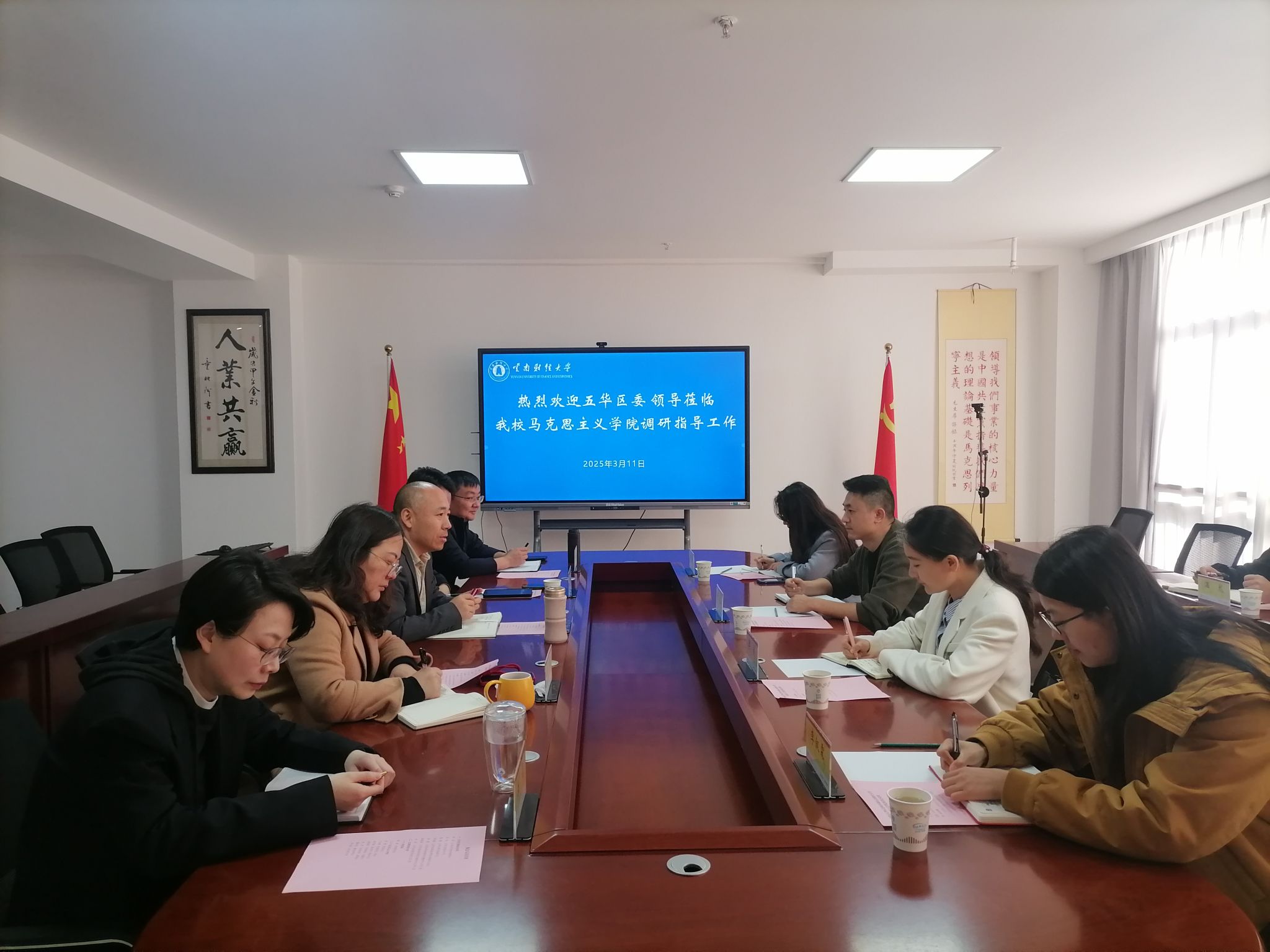 为做好大思政课建设工作,提升学校的影响力。3月11日,应马克思主义学院的邀请,五华区委组织部、纪委、团委等部门的领导到学校开展交流座谈。五华区团区委书记李欣、副书记杨敏,纪委宣传部部长胡波,区委组织部党员教育中心主任李叙霖等出席。会议由马克思主义学院党委书记曾蕾主持。