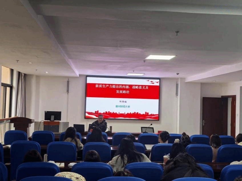 近日,为全面学习贯彻落实党的二十届三中全会精神,学院邀请贵州财经大学何伟福教授为师生做“新质生产力内涵、战略意义及发展路径”专题讲座。