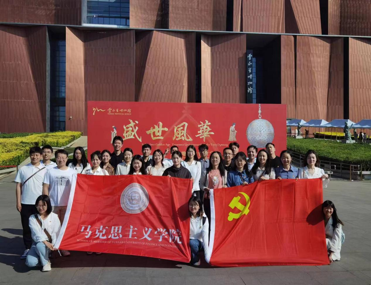 2023年5月19日上午九时,马克思主义学院学生党支部组织党员同志前往云南省博物馆进行参观学习,开展了“追忆千古文明,牢记初心使命”的主题党日活动。学生党支部共16名党员参加了此次主题党日活动。