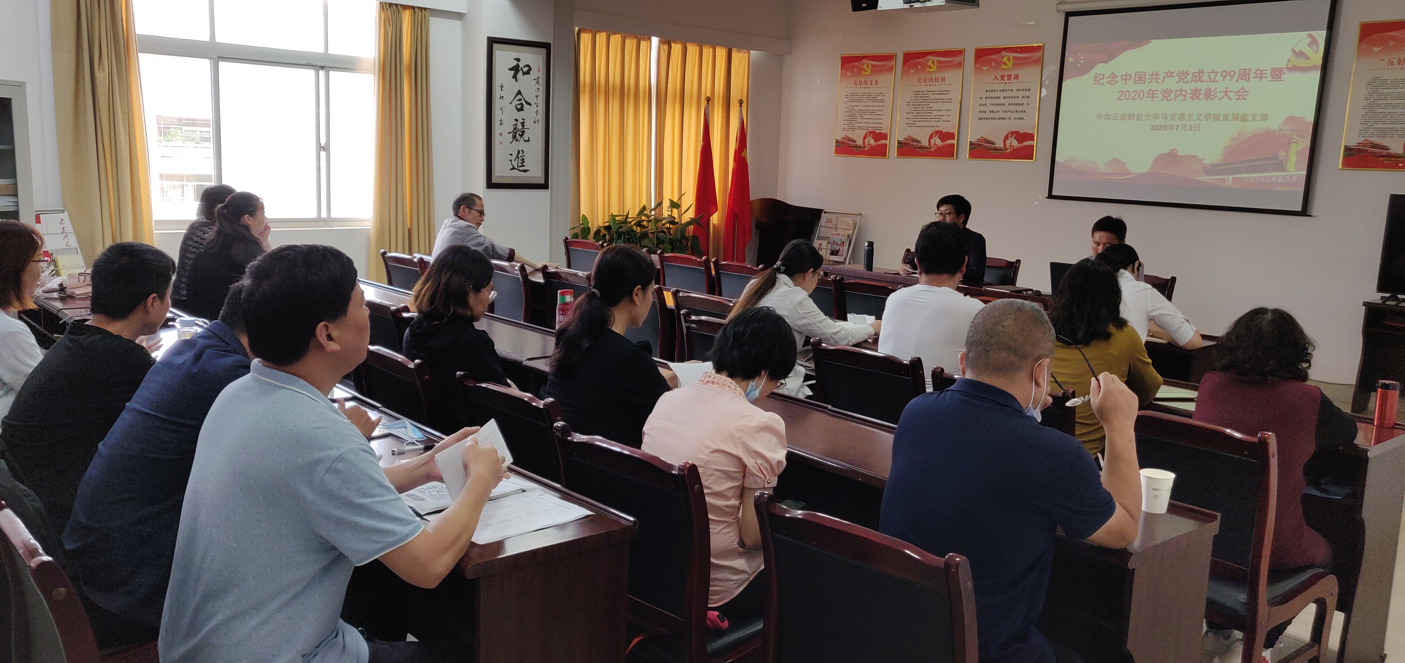 为隆重庆祝中国共产党成立 99 周年,教育和激励广大党员不忘初心、牢记使命。7月3日下午,学院在博远楼311党员活动室举行了庆祝中国共产党成立99周年主题党日活动。全院在校师生党员参加了此次主题党日活动,活动由直属党支部书记李亚军主持。