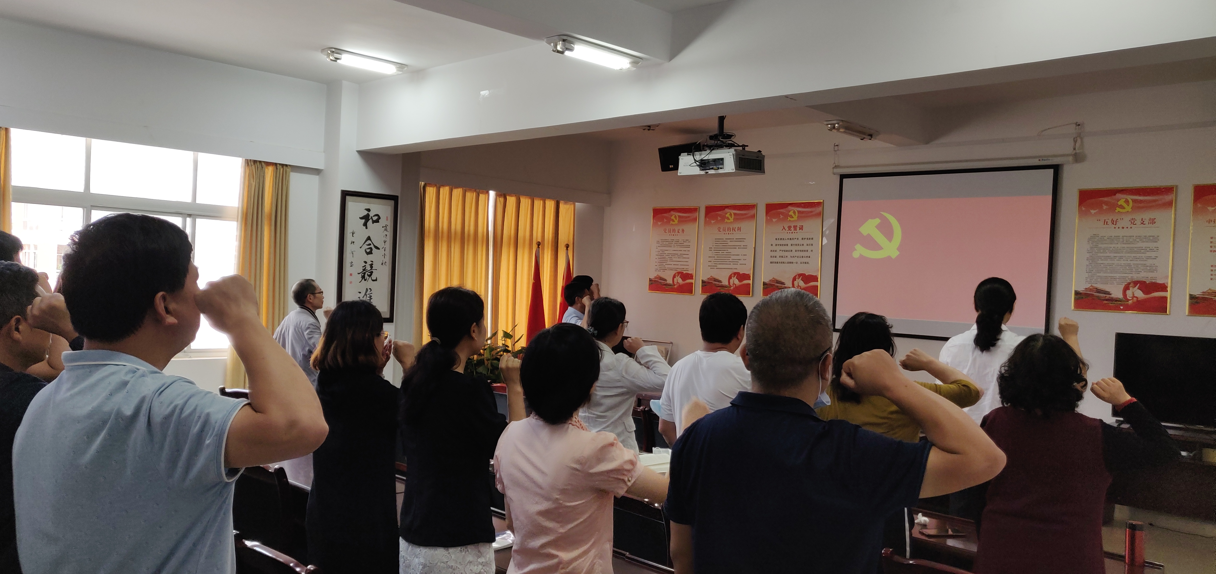 首先,直属党支部书记李亚军带领参会党员重温入党誓词,全体党员面对党旗,举起右拳,庄严宣誓,再次接受心灵的洗礼,铭记庄严的承诺,牢记共产党员的政治责任、工作担当和光荣使命。