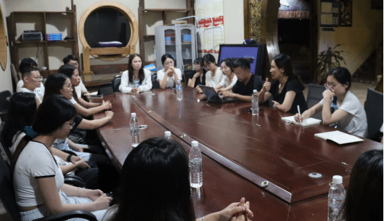 结束第一天的实地走访调研,王晓芬带领实践团就调研总体成效及存在问题作复盘和总结。她肯定了实践团在调研过程中的积极主动,展现了青年学生的良好风貌,同时也强调调研过程中要充分挖掘调研信息,做到一手数据实、准、深,为产出高质量调研报告,做足数据资料整理收集。