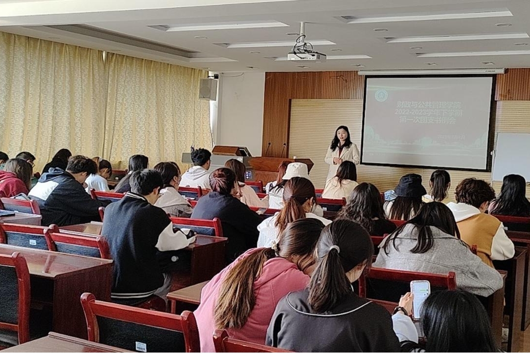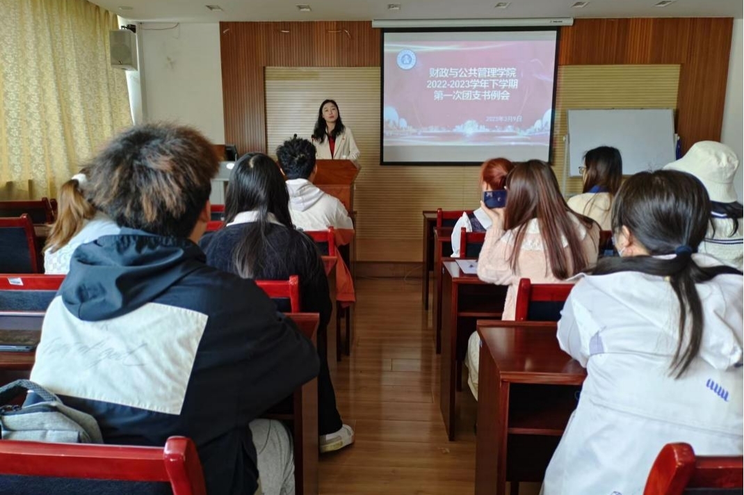 3月9日,财政与公共管理学院团委在北院逸夫楼603召开2022-2023学年下学期第一次团支书例会,全院各班级团支书、部分学生骨干参加会议,辅导员王淑一主持。