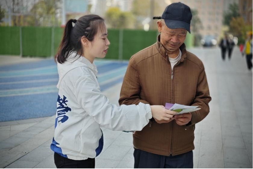 活动中,同学们争当宣传志愿者,纷纷走上街头,通过发放宣传单、宣传手册和讲解反诈知识等方式,向万彩城及周边居民普及电信网络诈骗的犯罪手段、预防方法等相关知识。同学们还向老年人示范了如何下载安装“国家反诈中心”APP。