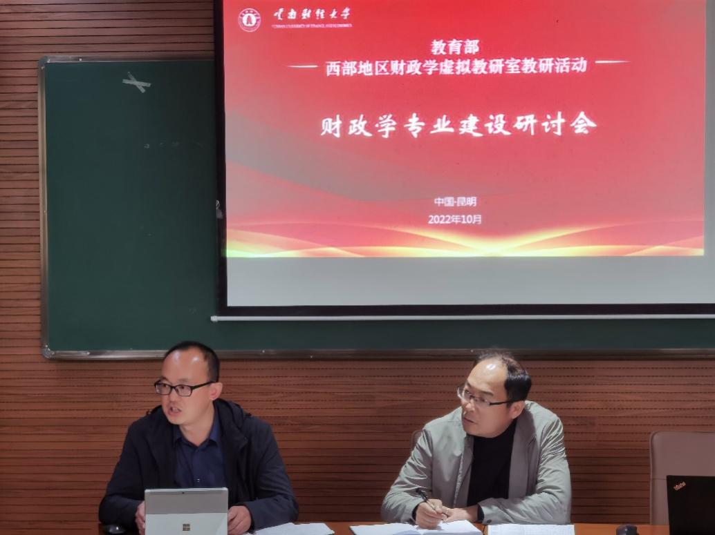 10月14日下午 14:30,我院召开财政学专业课程建设研讨会(教育部“西部地区财政学虚拟教研室”教研活动),财政与公共管理学院院长缪小林教授、副院长和立道教授、财税系主任闻勇副教授做财政学专业建设讲解,财政教研室全体教师参加本次会议。