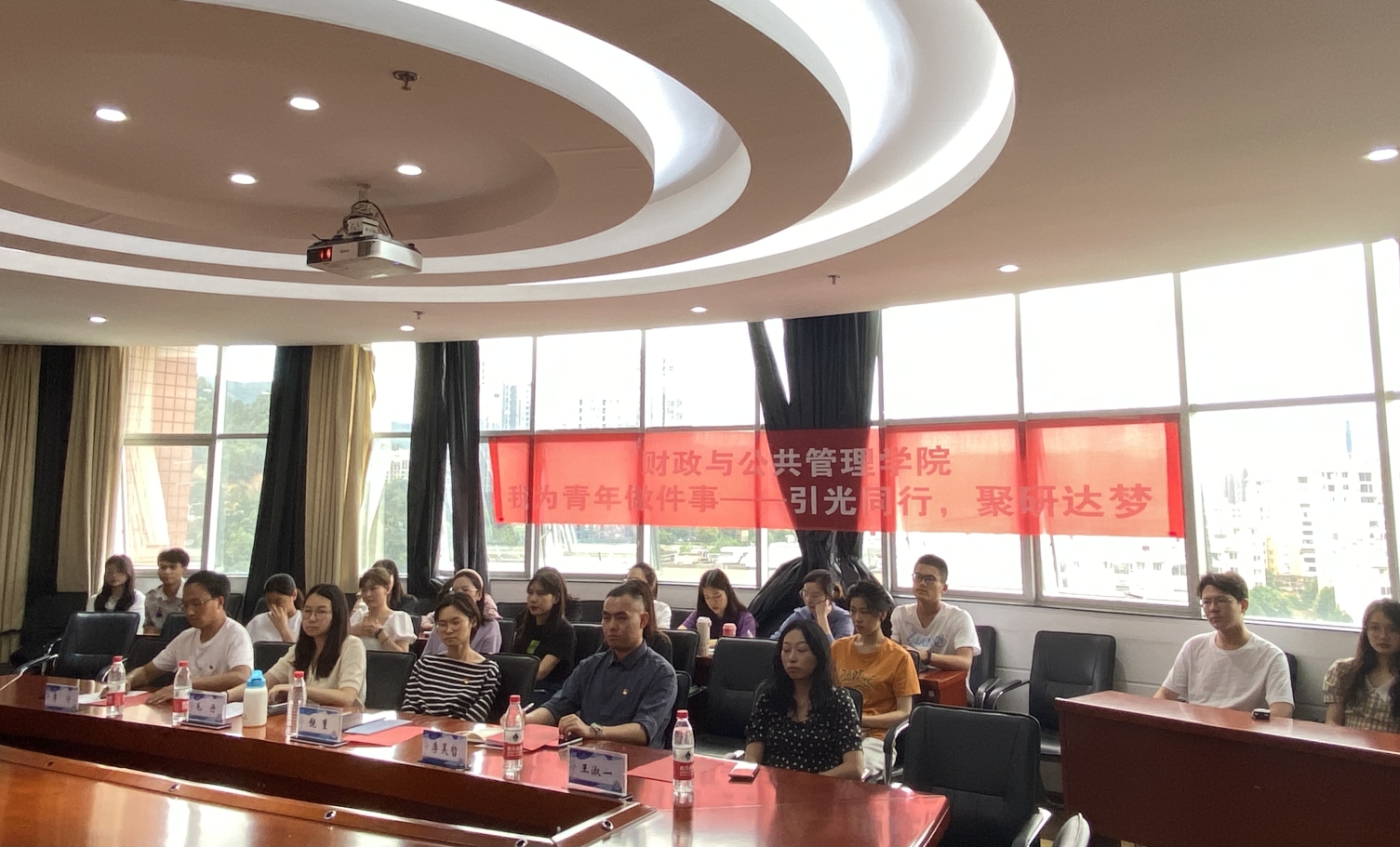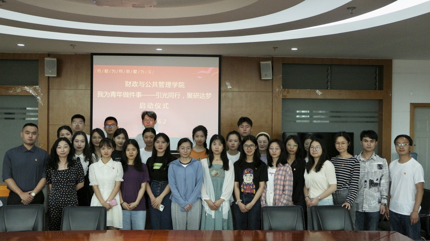 2022年6月2日,财政与公共管理学院在逸夫楼923举办“我为青年做件事——引光同行,聚研达梦”活动启动仪式。活动旨在选拔了一批优秀硕士研究生,一对一联系本科班级,充分发挥研究生在学业规划、专业学习、科学研究等方面的引领作用,建立互帮互助、共同进步的良好学习氛围。学院相关科室负责人、研究生各党支部书记、院研究生会学生骨干、研究生朋辈导师志愿者及本科学生班长代表参会。