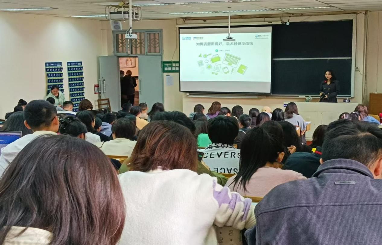 10月26日,中国知网西部开发区市场开发部战略新业务经理罗闰扬以“知网资源用得好,学术科研没烦恼”为主题,围绕论文选题与检索、深度文献阅读、学术规范科普及知网选刊投稿方法等方面为同学们进行详细介绍。