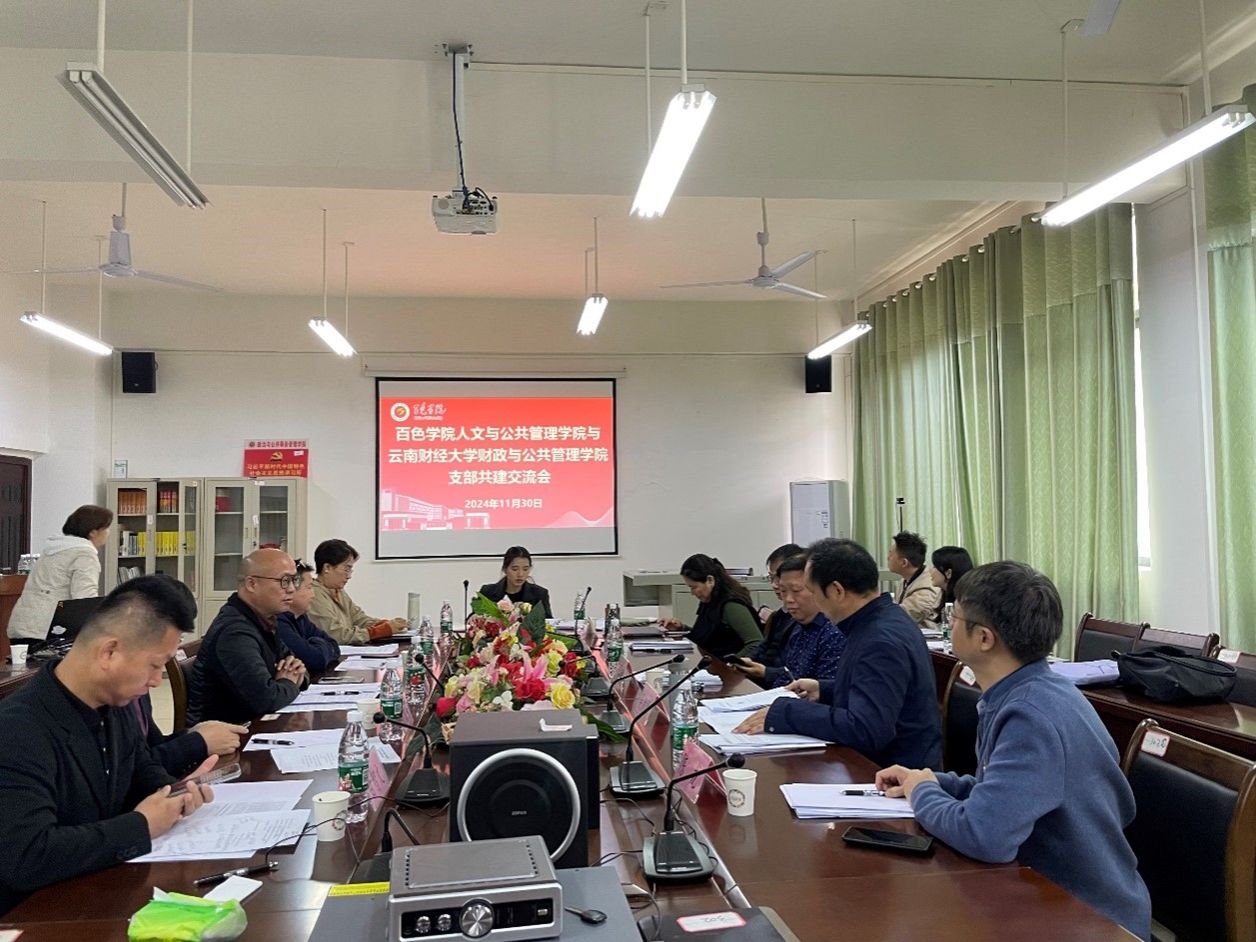 2024 年11月30日,在财政与公共管理学院副院长李重照在带领下,学院师生党员与百色学院人文与公共管理学院开展支部共建活动,学校研究生院副院长肖斌参加了相关活动。