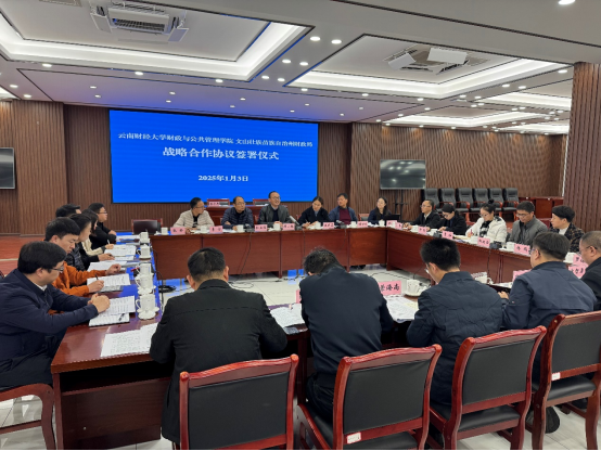 2025年1月3日,财政与公共管理学院与文山州财政局在文山举行了战略合作协议签署仪式。文山州财政局副局长杨友富主持了签约仪式。