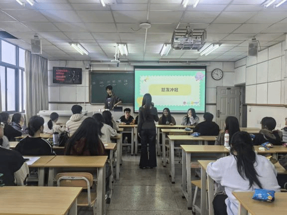 出宿舍,让青春绽放活力。财政24-2和事业25-1团支部分别以“撕名牌”“击鼓传花”等游戏增进同学情谊,在宿舍外交流互动、展示自我。