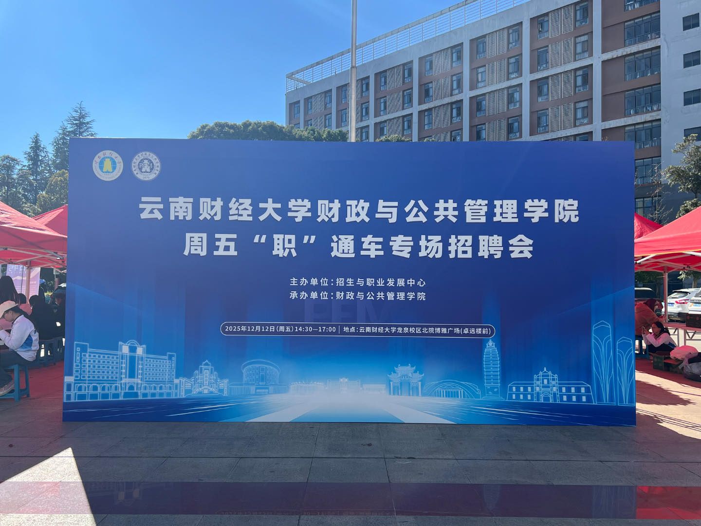 为拓宽毕业生就业渠道,财政与公共管理学院于2025年12月14日下午在WilliamHill官方网站龙泉校区北院卓远楼前博雅广场成功举办“政职冲——‘职’面未来”专场招聘会。本次活动共邀请到三十余家涵盖财经、法律、教育等领域的企业参与,提供岗位100余个,精准对接学生求职需求。