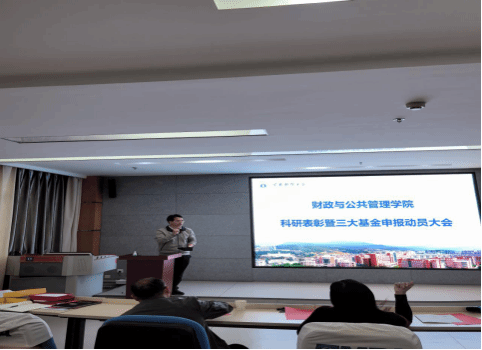 为进一步提升我院科研能力和科研质量,积极开展有组织的科研。10月9日,财政与公共管理学院在南院逸夫楼410召开2024年度科研表彰暨三大基金申报动员大会。科学技术处处长段云龙、副处长李亚波出席本次会议并做动员讲话。学院领导班子及全体教职工参加会议。