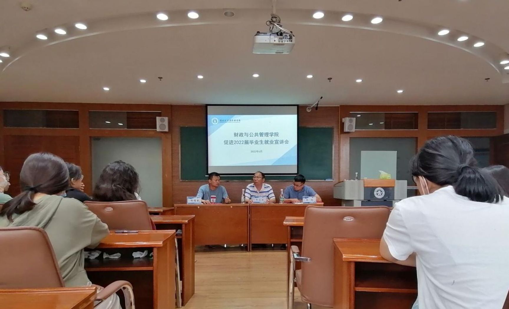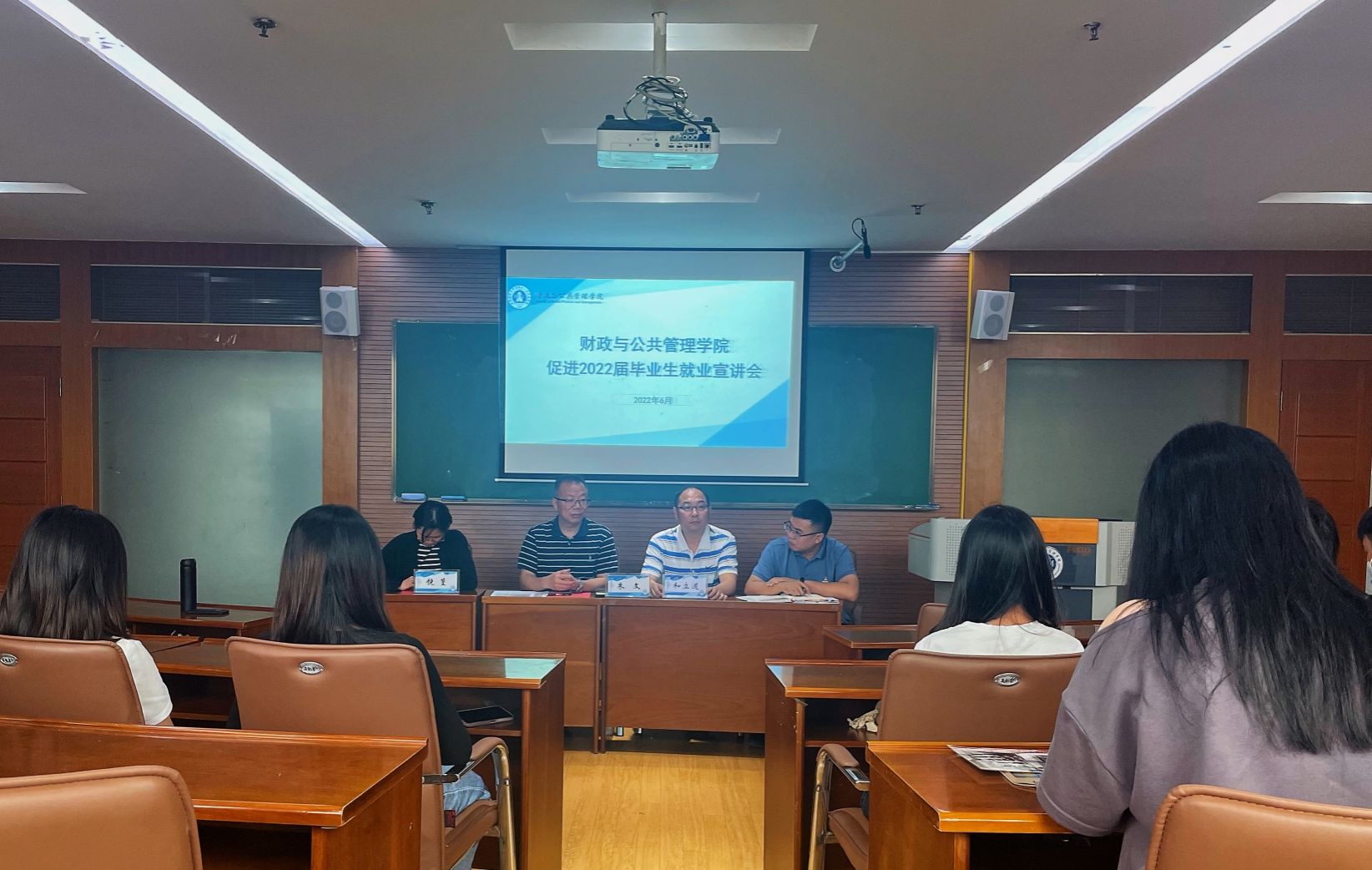 为进一步促进毕业生积极就业,2022年6月7日-17日,财政与公共管理学院党委书记朱文,院长缪小林,党委副书记王晓芬,副院长韩全芳、和立道,各教学系主任、教研室主任及全体辅导员分组深入毕业班级开展促进2022届毕业生就业宣讲活动。本次就业促进宣讲活动共举办8场,覆盖全体毕业生班级。