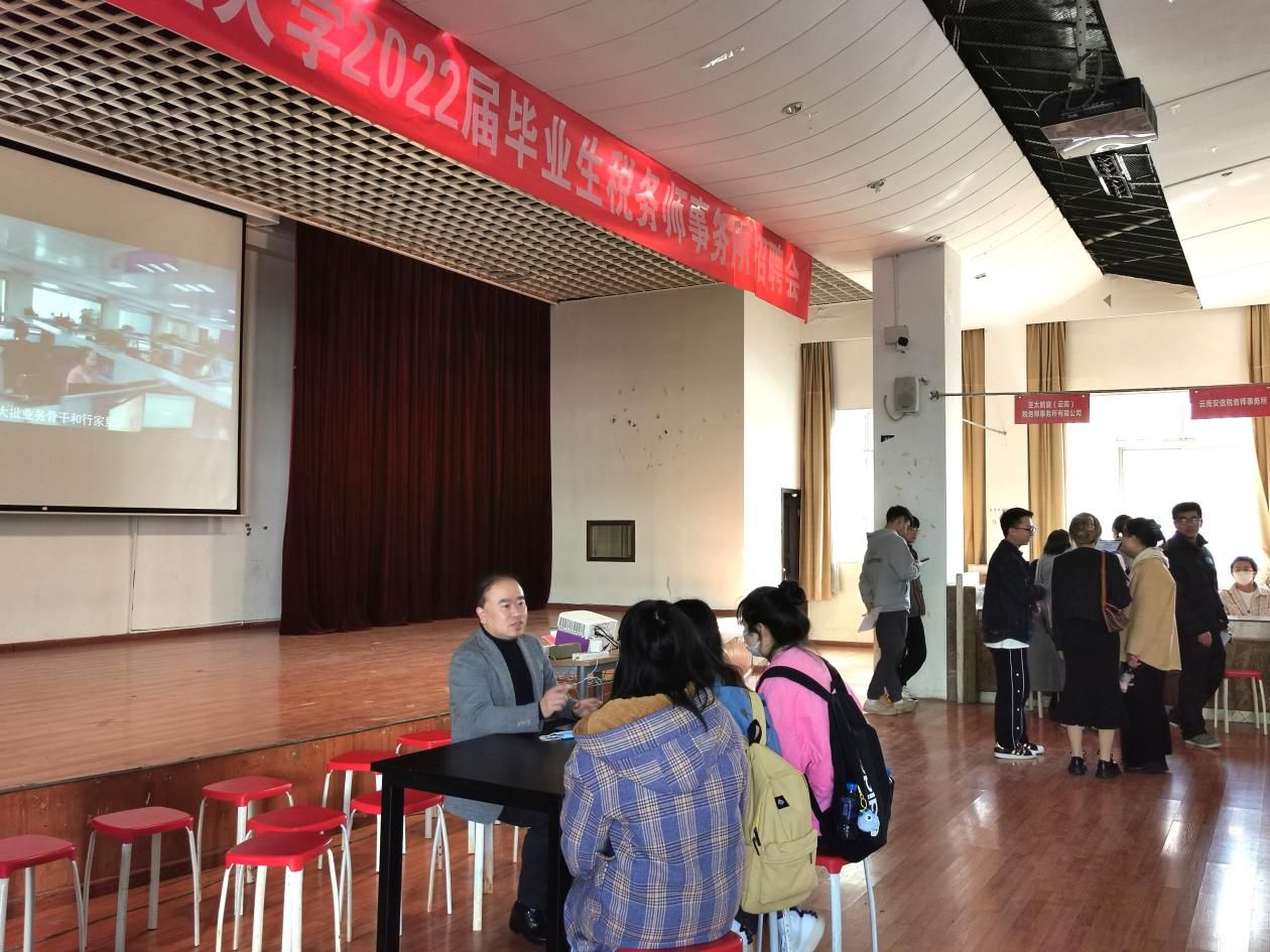 12月11日上午,2022届毕业生税务师事务所招聘会在龙泉路校区南院学生服务中心举行。国融兴华亚太税务师事务所、众德信合税务师事务所、云能税务师事务所等16家税务师事务所提供就业岗位近100个,需求涵盖税收学、财政学、会计学、审计学、经济学等专业,学校近300名应届毕业生参加招聘会。